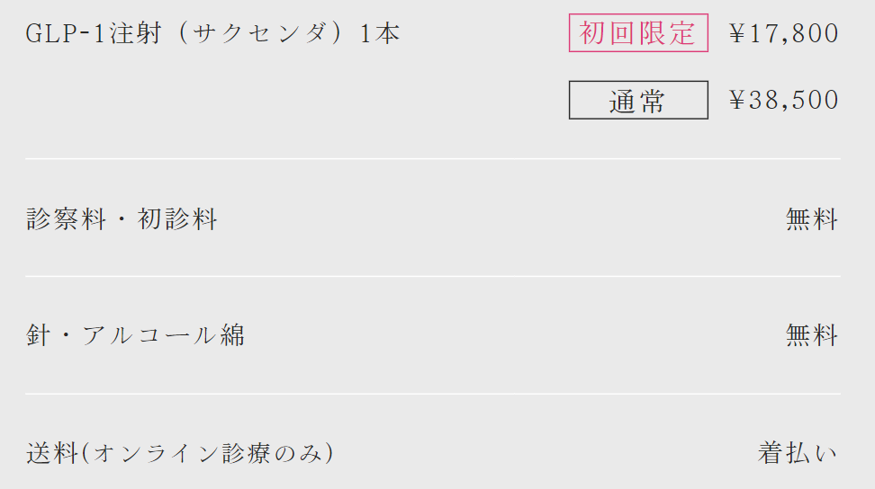FIRE CLINICでは、初回の方に限り17800円、通常38500円から処方・診察を行っております。