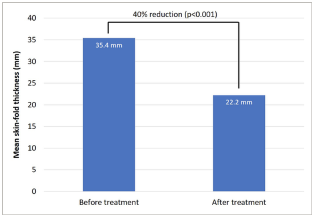 イギリスの研究で4〜12回の治療で皮下脂肪の厚みが40%低下した
