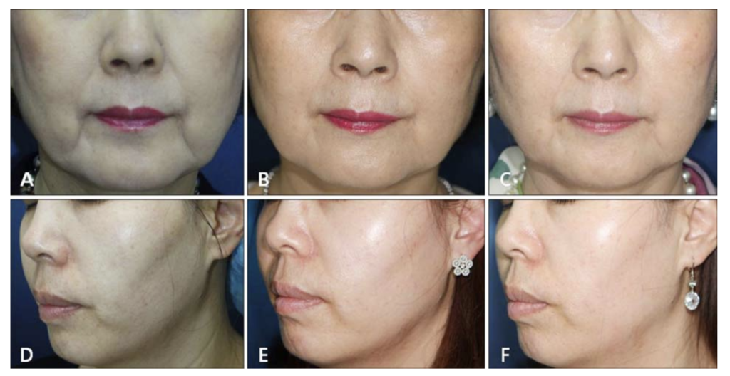 治療後 3 か月で有意な改善が見られ、有効性は 6 か月間維持されました。しわと皮膚弛緩スコアの平均は、顎のラインと眼窩周囲の領域で最も減少しました。