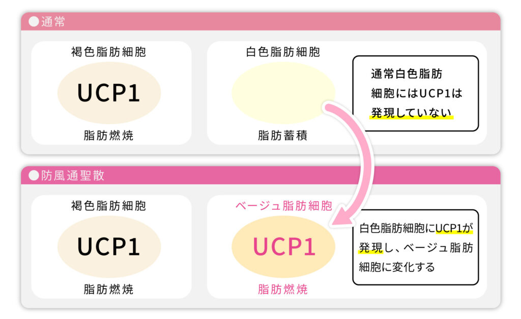 防風通聖散はこのUCP-1を白色脂肪細胞でも増加させることが観察されました。