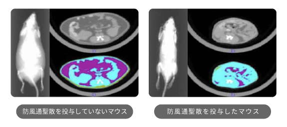 防風通聖散を使用したマウスの方が内臓脂肪が少ないことが明らかですね!
