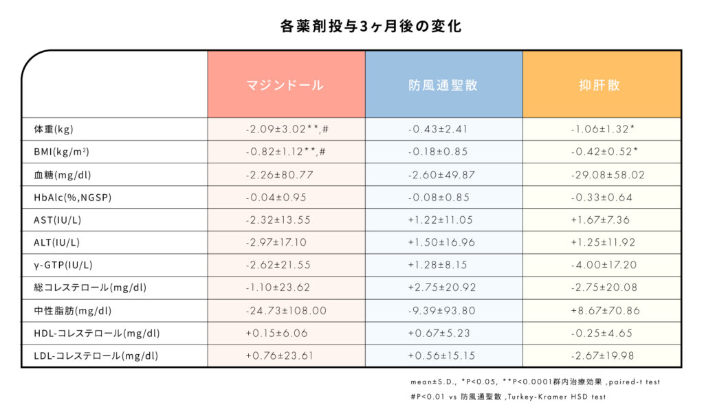 なんと、3ヶ月の投薬期間において防風通聖散よりも、体重減少効果が高かったということです。