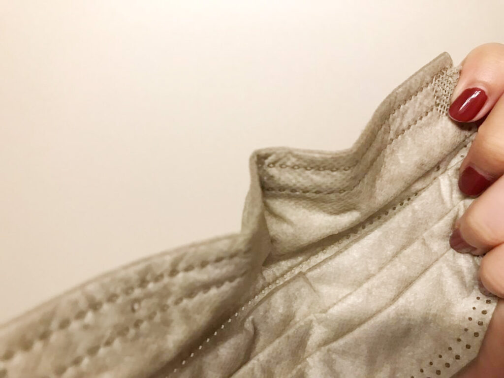 鼻にヒアルロン酸を注入したので、形が崩れないよう、マスクで保護します。普段使っているマスクのワイヤー部分を、写真のように「W」に折って、付けるだけ。