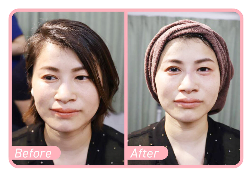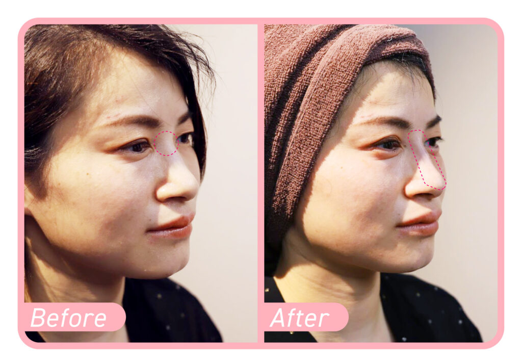 施術後に鏡を確認して、こちらも「おおおお!」と雄たけびを上げてしまうほど、キレイな仕上がり!beforeを見ても、鼻のへこみはあまり気になりませんが、afterは明らかに鼻筋がピカッと光っていました!術後の結果を見せてもらうと「やってよかった」と思いますね。