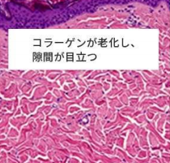 表皮の下層にある真皮は、線維状のタンパク質である「コラーゲン」が約70%を占め、その間をゼリー状のヒアルロン酸が満たしています。