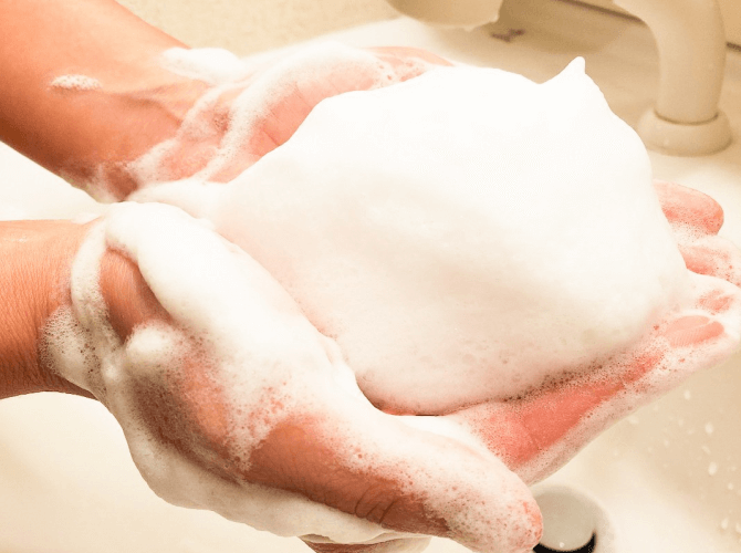 施術前に洗顔し、お化粧を落としていただきます。クレンジングと洗顔フォームは当院にて準備しておりますので、ご自由にご利用ください。